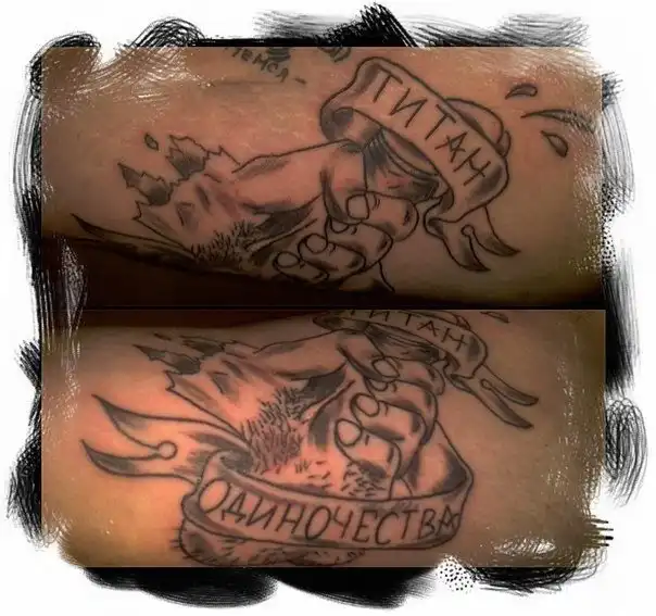 Ну и "титан одиночества" - однозначно, только истинный одинокий титан решится набить такое) это вам не в интернетах п*здеть)