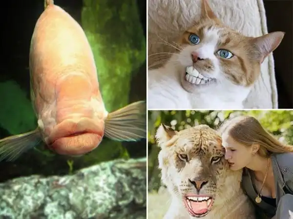 Мастера фотошопа в очередной раз решили поиздеваться над достоянием матушки природы и приравнять всех живых тварей под одну гребенку. Теперь вы знаете, как выглядели бы коты, собаки, коровы, рыбки и даже птицы, если бы у них были человеческие рты.