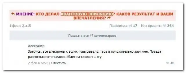 Квантовая эпиляция это что-то с чем-то! Надо еще ультразвуковой массаж делать.