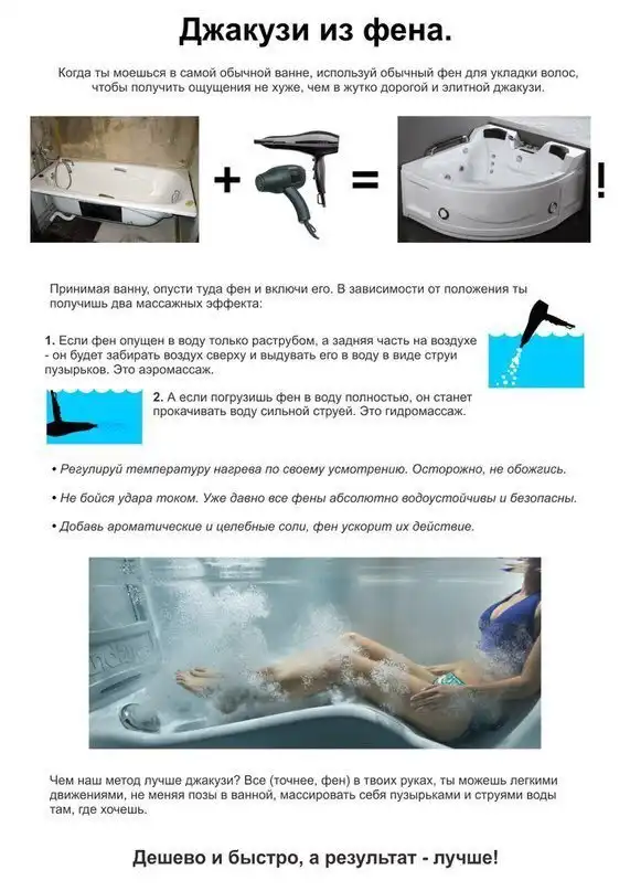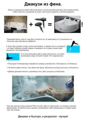 Теще скинул ссылку на фен, а то она хотела джакузи покупать. Сильно обрадовалась, что сэкономит. Ну и я "рад" за нее!