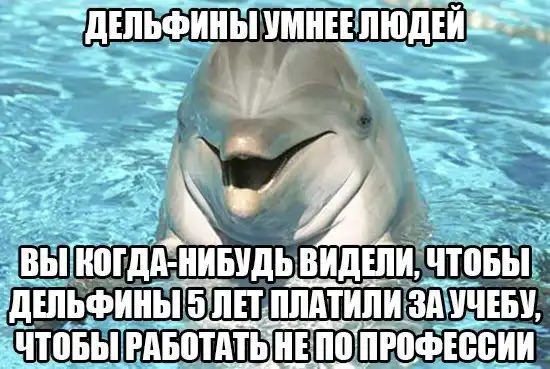 но вы так же не видели чтобы дельфины 5 лет платили за учёбу чтобы работать по профессии