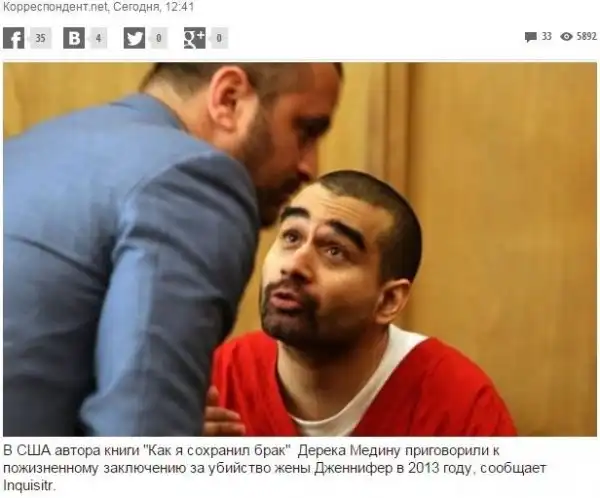 Видимо, именно этот совет дал Дерек Медина своей жене Дженифер в 2013-м году...
