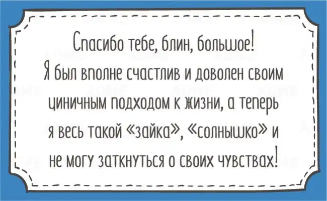 Сентиментальности не каждому по душе. Ведь недаром некоторые люди, даже будучи в крепких, теплых отношениях, все равно не понимают тех, кто излишне романтичен. Но романтика и юмор могут идти вместе, главное — найти человека, с которым у вас будут похожие взгляды на этот счет.