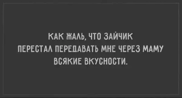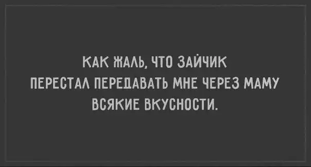 Зайчик теперь передаёт мне всякие вкусности через жену, но требует, чтобы я покупал для них продукты...