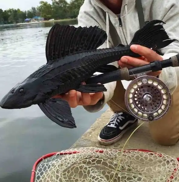 Plecostomus, одна из разновидностей сомов, в аквариумах таких держат.
