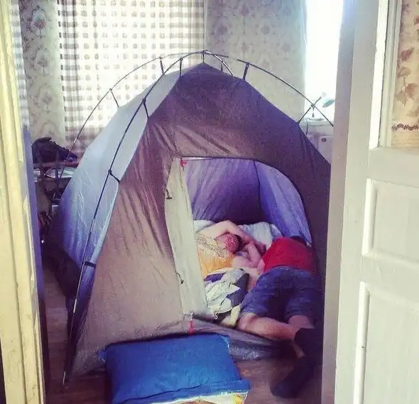 Вот что происходит, когда палатка куплена, а времени выбраться в лес все нет