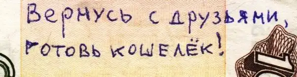 Бедолага, видимо совсем туго, раз уже на купюре пишет...