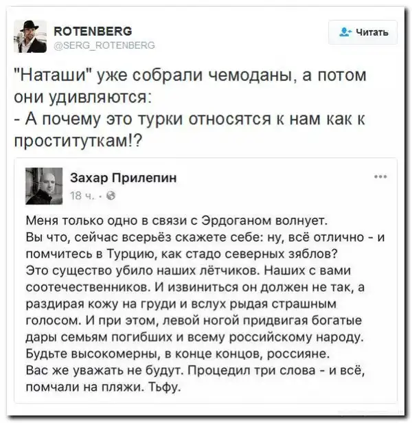 да насрать! пока в россии не стреляют у соседей пусть хоть потоп с пожаром одновременно. хохлы сами в это дерьмо влезли никто в жопу не пинал и за руку не тянул. а туркам еще отрыгнется. точнее уже отрыгнулось и по самому больному по кошельку