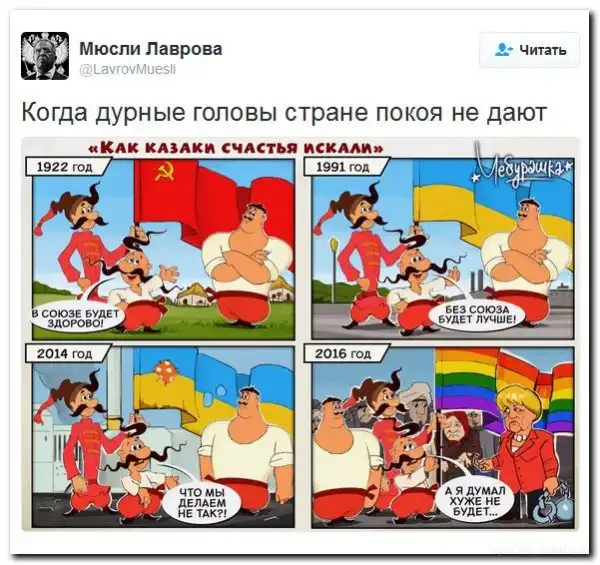 большая часть этих высеров посвящена некоему самодовольству, какая россия, якобы, крутая и какие глупые и недалекие страны европы, сша и украина...