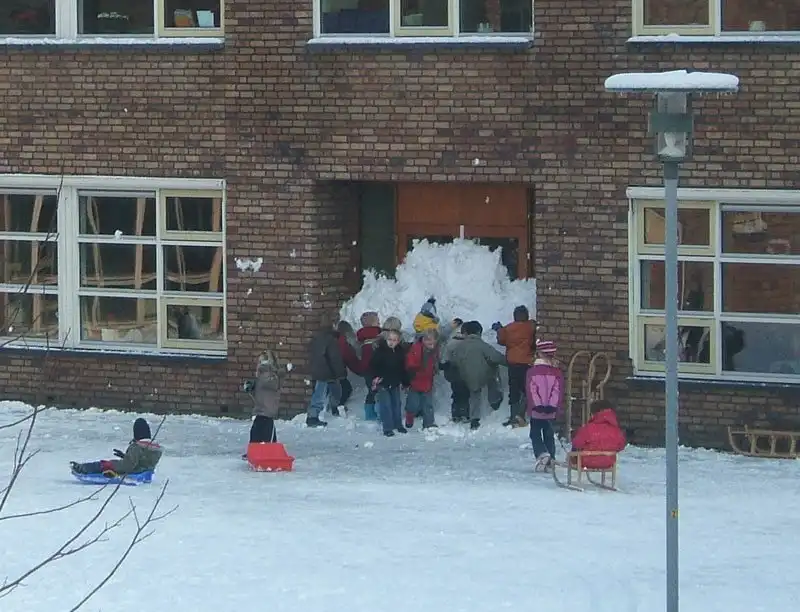 Эх, детсво… Тогда все решения принимались проще. Завалить двери школы снегом? Да запросто, пошли за лопатками!