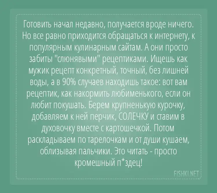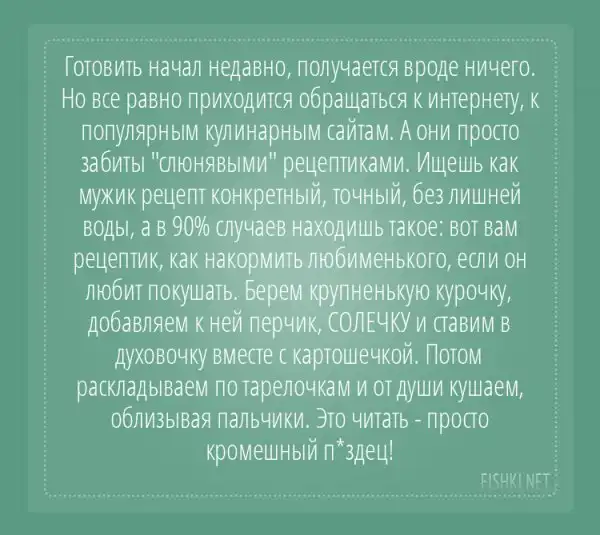"Не делайте из еды культа!" - предупреждал один известный литературный герой. Но что делать, если кушать хочется, а пельмени и макароны с тушенкой уже не лезут? А тут еще столько форумов и сайтов кулинарных развелось, хочешь - не хочешь, а зайдешь почитать рецепты. Кулинария - вот где кипят настоящие страсти и интриги!