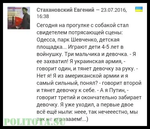 Как обычно - минус за "хохлов" и за всю тему обгаживания Украины. Учите историю, дети. И не по теленовостям Путин-ТВ, а по советским учебникам. Хотя какие вы дети, вы уже руссо-фашисто. Радует, что не поголовно все.