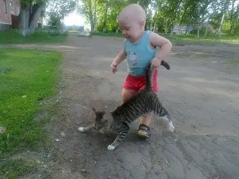 и что позитивного в первой картинке? малолетний дебил тащит кота за хвост... как смешно!