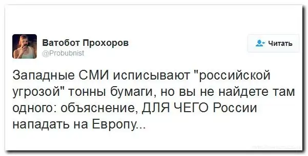 Картинки подобраны довольно интересным образом: нельзя сказать, что собраны объективно разнополярные точки зрения, в основном это высмеивание запада, но они бывают правы, редко, учитывая весь каламбур, который происходит в мире, но бывают.