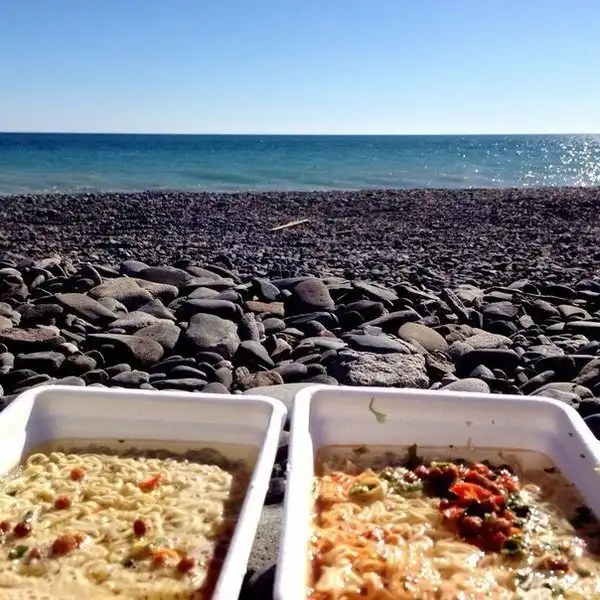 Попробуй. Берёшь Доширака пачку, нет денег - возми Ролтома пачку. В кастрюльке вскипяти, взбей пару яиц с молоком. Вливай помешивая. Добавь сосиску мелко порезанную. Зелень типа лучок и укропчик мелко покрошенные. Выключи плиту и подожди 10 минут. И готово.