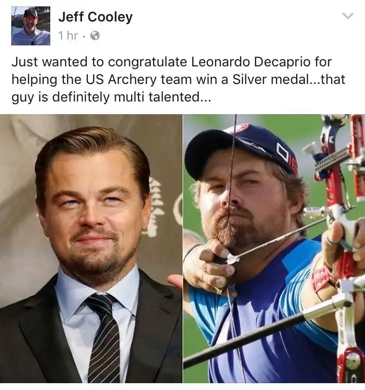 На 27-летнего лучника Брейди Эллисона сначала обратили внимание болельщики, а теперь и мировые СМИ. Первыми отреагировали пользователи Twitter. Комментаторы назвали спортсмена альтер-эго ДиКаприо, а кто-то посчитал, что это сам Лео, который ведет двойную жизнь.