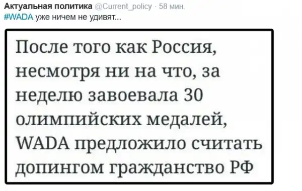 Понятно что мировой спорт уже давно политизирован, но всё же печально лишний раз видеть это.
