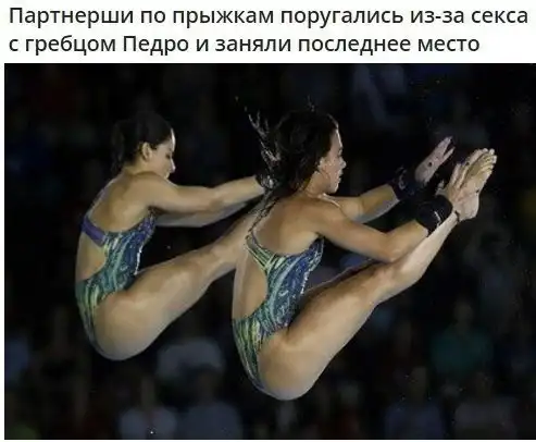 НОК Бразилии рассмотрел необычную жалобу: Ингрид Оливейра за сутки до старта попросила партнершу по синхронным прыжкам Джованну Педросу провести ночь вне номера, так как Оливейра хотела пригласить на ночь бразильского гребца Педро Гонсалвеша. Джованна отказала коллеге, поставив ту в известность, что занятия сексом между спортсменами является нарушением внутренних правил Олимпийской деревни.