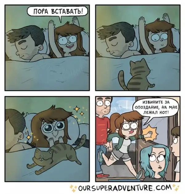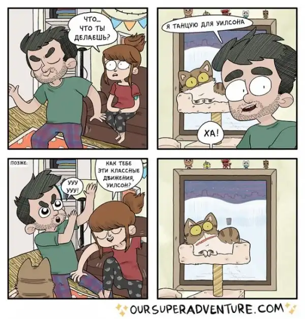 Сара Грейли рисует забавные комиксы по мотивам своей жизни с парнем по имени Стеф и кучей котов. Глядя на ее рисунки, понимаешь, что рутина и совместный быт не убивают любовь, а наоборот, делают ее крепче.