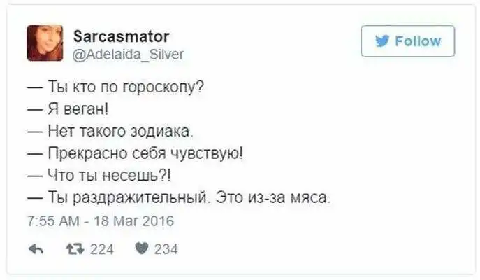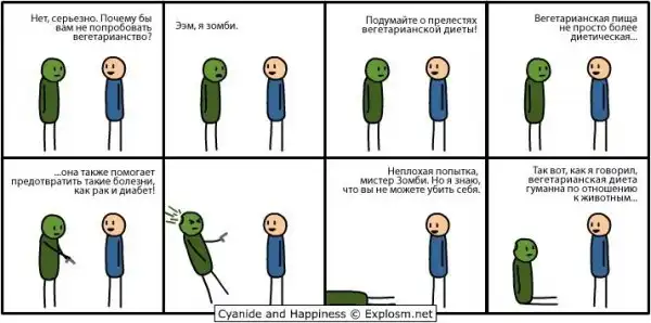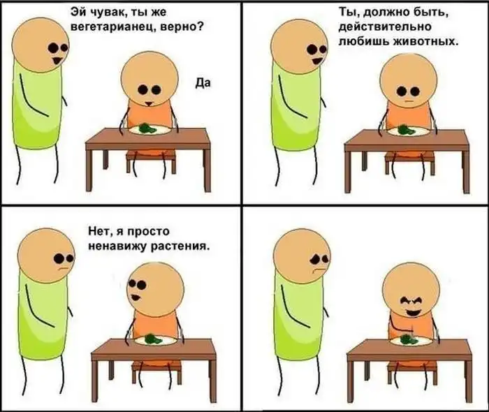 Противостояние мясоедов и веганов, наверное, не прекратится никогда. В этой подборке мы собрали весёлые приколы про людей, которые отказались от животной пищи. Отчасти они помогут разобраться в том, почему мясоеды и веганы так не любят друг друга.