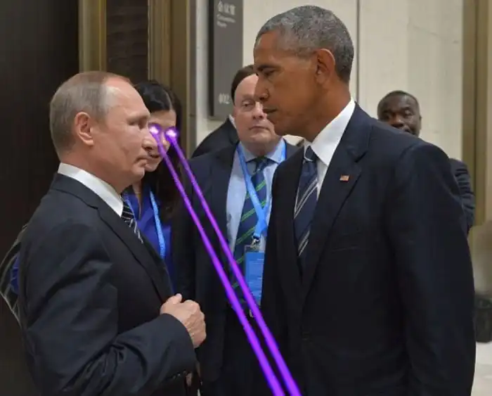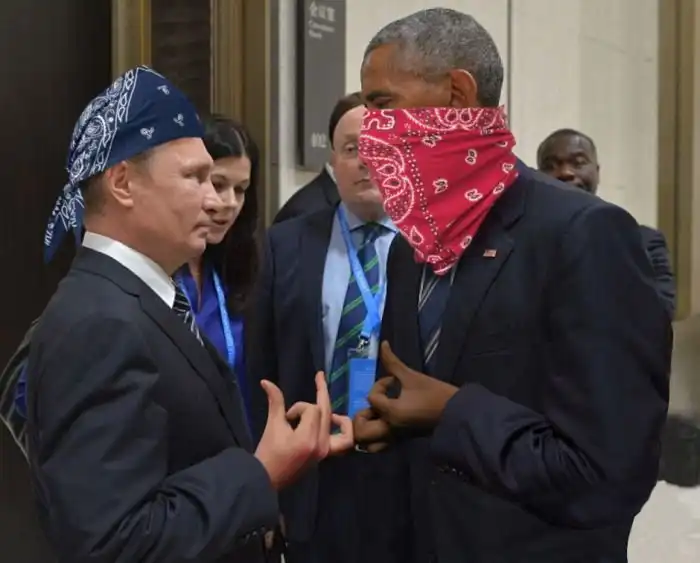 Фото обменивающихся холодными взглядами на проходящем в китайском Ханчжоу саммите G20 лидеров России Владимира Путина и США Барака Обамы стало новым мемом в сети. Активизировались и мастера фотошопа, которые стали соревноваться друг с другом в создании самой забавной фотожабы.