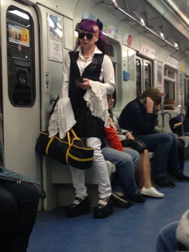 Очередная подборка фотографий странных и модных персонажей, которых можно встретить в российском метро.