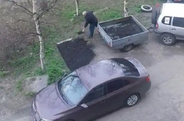 Автолюбитель в Заполярье устал ждать и сам заасфальтировал ямы во дворе