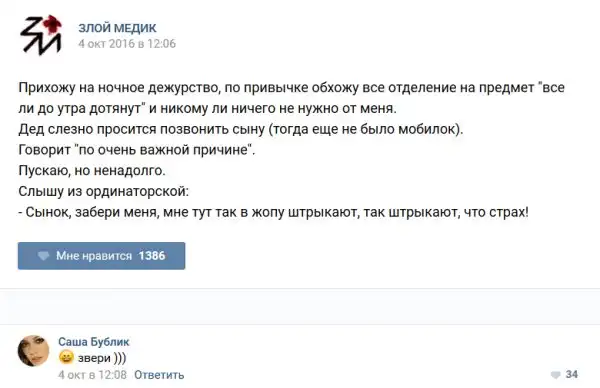 В нашей стране несколько проблем или бед, но к ним не относится медицина, но сегодня мы как раз будем говорить именно о ней. Запись с названием "Истории врачей",расскажет Вам о том, какие-же истории происходят с врачами, их пациентами и почему обе категории иногда ведут себя странно.