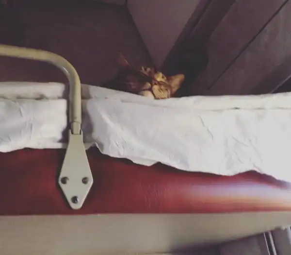 У меня в этом купе была нижняя полка, но я понял - лучше не спорить!