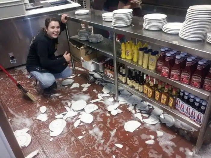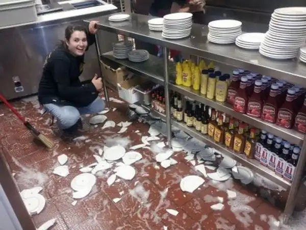 1. Скользкий пол - недруг человеку с посудой в руках...