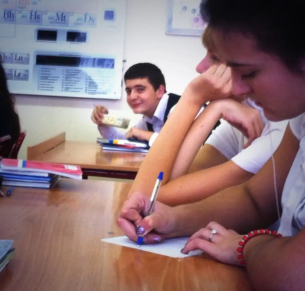 На уроке скучно - будущий тату-мастер уже во всю практикуется