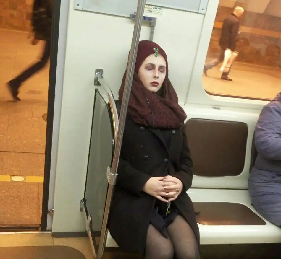 Очередная подборка фотографий странных и модных персонажей, которых можно встретить в российском метро.