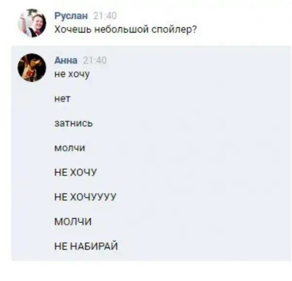 Когда он начинает спойлерить