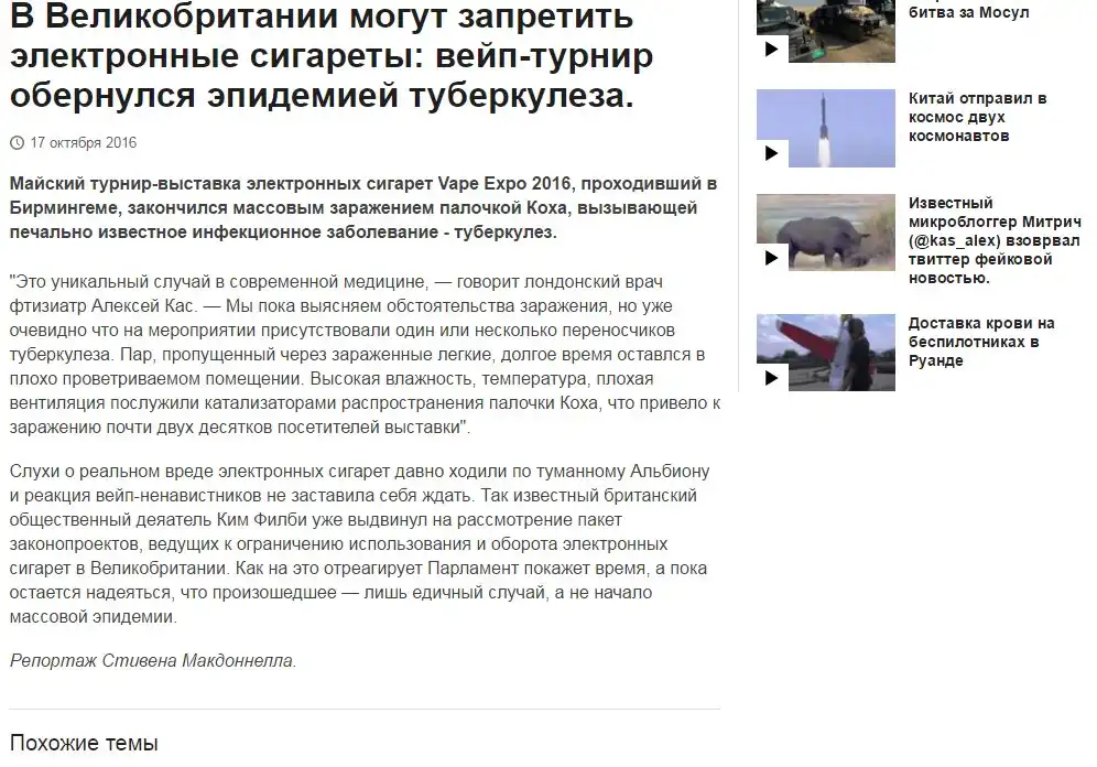 В заключении Public Health England от августа 2015 года утверждается, что электронные сигареты на 95% менее вредны, чем обычные. Но не все отечественные наркологи с этим согласны