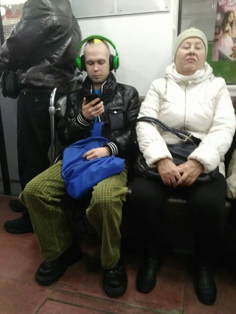 Очередная подборка фотографий странных и модных персонажей, которых можно встретить в российском метро.
