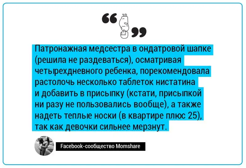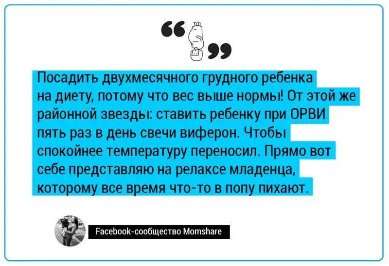 В одном из Facebook-сообществ для матерей появился пост одной из участниц с призывом поделиться воспоминаниями о самых дурацких, абсурдных и бессмысленных советах, полученных молодыми родителями от педиатров. За пару дней запись, сделанная Ольгой Поляковой, собрала почти 150 ответов. С разрешения участниц сообщества публикуем избранные места из комментариев к этому посту.