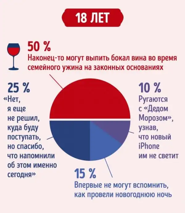 9 забавных графиков о том, как мы проводим Новый год в разном возрасте
