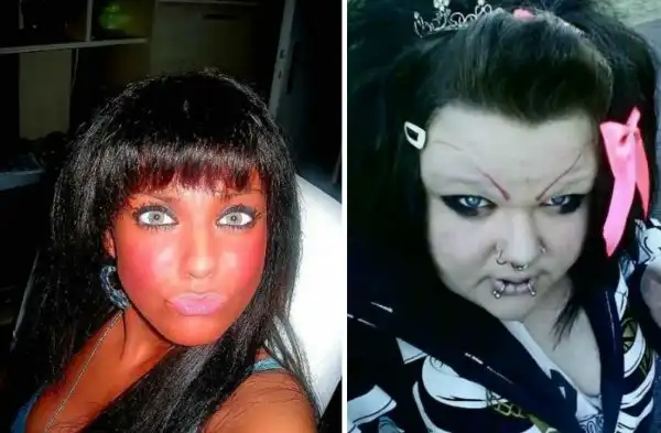 Сказать честно -в каждом из нас можно найти кучу недостатков, но иногда дамы превосходят даже то, что дано им природой, губя это неумелым, глупым и отвратительным макияжем, а также плюя на себя с высокой колокольни