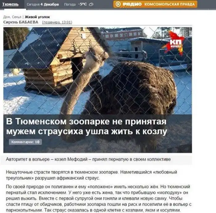 22. Авторитет - козел Мефодий и его жена страусиха держат в страхе весь зоопарк. Это заготовка для следующей новости.