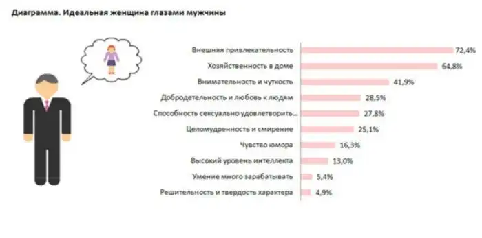 16. Хотя, подобных опросов проводилось не мало и вот, например, что такое идеальная женщина глазами российских мужчин