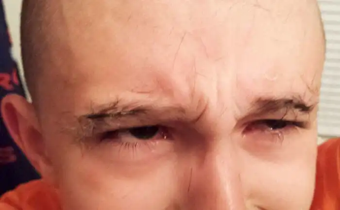 "Мой сын решил выщипать брови. Получилось слишком коротко - и тогда он состриг волосы с головы и приклеил к бровям"