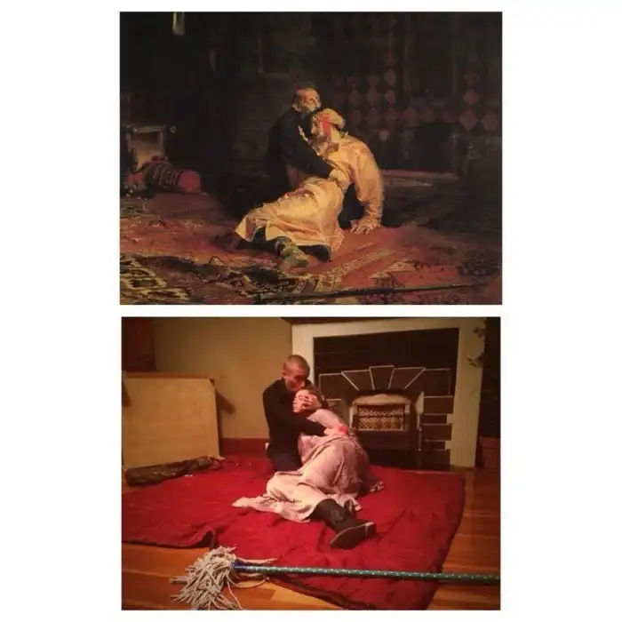 Ребята начинали экспериментировать с картин русских художников. «Иван Грозный и сын его Иван 16 ноября 1581 года», Илья Репин.