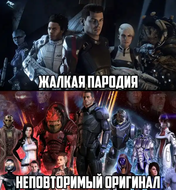 В том что Андромеда, как предполагается, высер чумного бомжа, по сравнению с оригинальной трилогией полной драмы и пафоса!