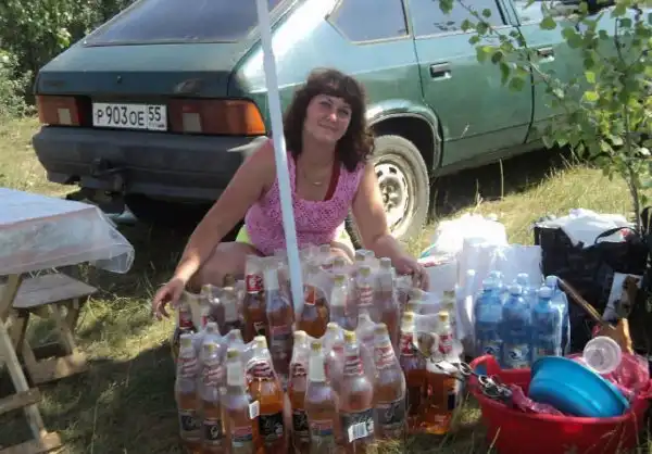 Ну ладно гопота фотографируется на фоне пивных бутылок . Но когда люди которым далеко за 30 ... Это видать предел мечтаний что ли ? Ну после "Москвича" конечно .