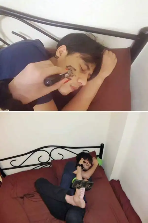 Так уж повелось, что в социальных сетях принято публиковать снимки, которые свидетельствуют о том, что у тебя в жизни все прекрасно. Вот и этот парень, у которого нет девушки, всячески старается убедить остальных пользователей сети в том, что она у него есть. Только взгляните, на какие ухищрения идет молодой человек, чтобы сделать обманчивые снимки для соцсетей.