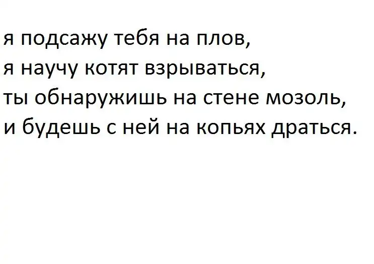 Был бы у тебя такой кот, ты бы без члена ходил, ибо он грызёт его.