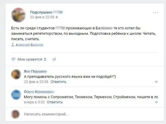 комментарии из социальных сетей.