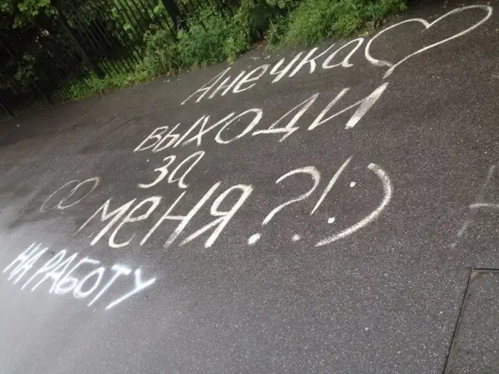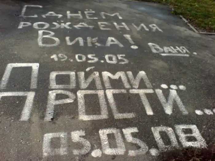 Хорошего асфальта в городах России мало, именно поэтому хороший асфальт украшают различными надписями.