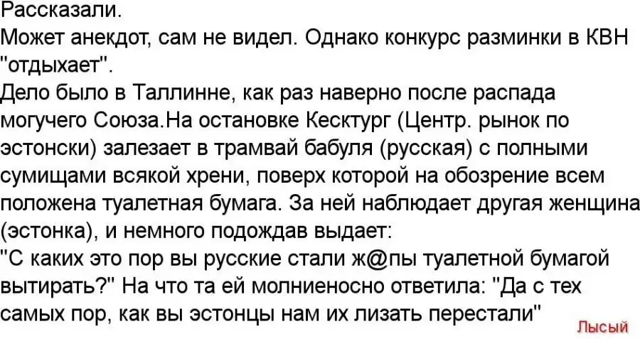 плюс....... поставил бы за *баных чухонцев ещё, но видимо потом)