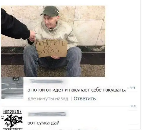 видел таких. просят на бухло, а вместо этого чебуреки с дошираками жруть... кругом на*балово...